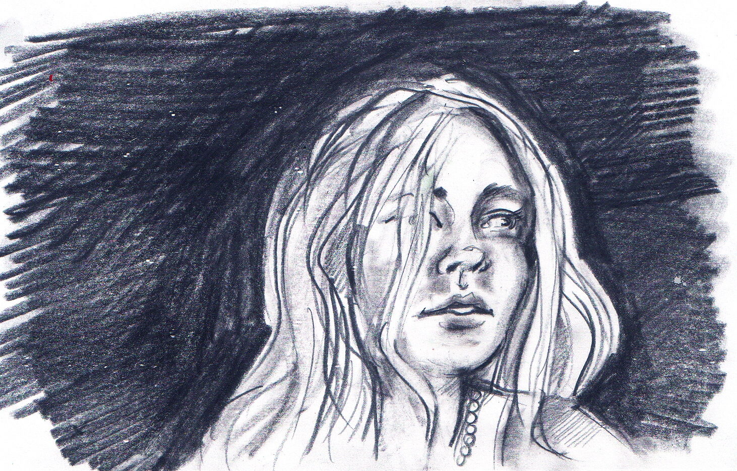 I have a portrait of Rebecca (in oil) to finish, started last night (just needs some finessing), and will share that when done. But to debrief the night for myself I just had to do a 5 min sketch right now (in pencil in the back of an index card). I call it Rebecca as California teen.