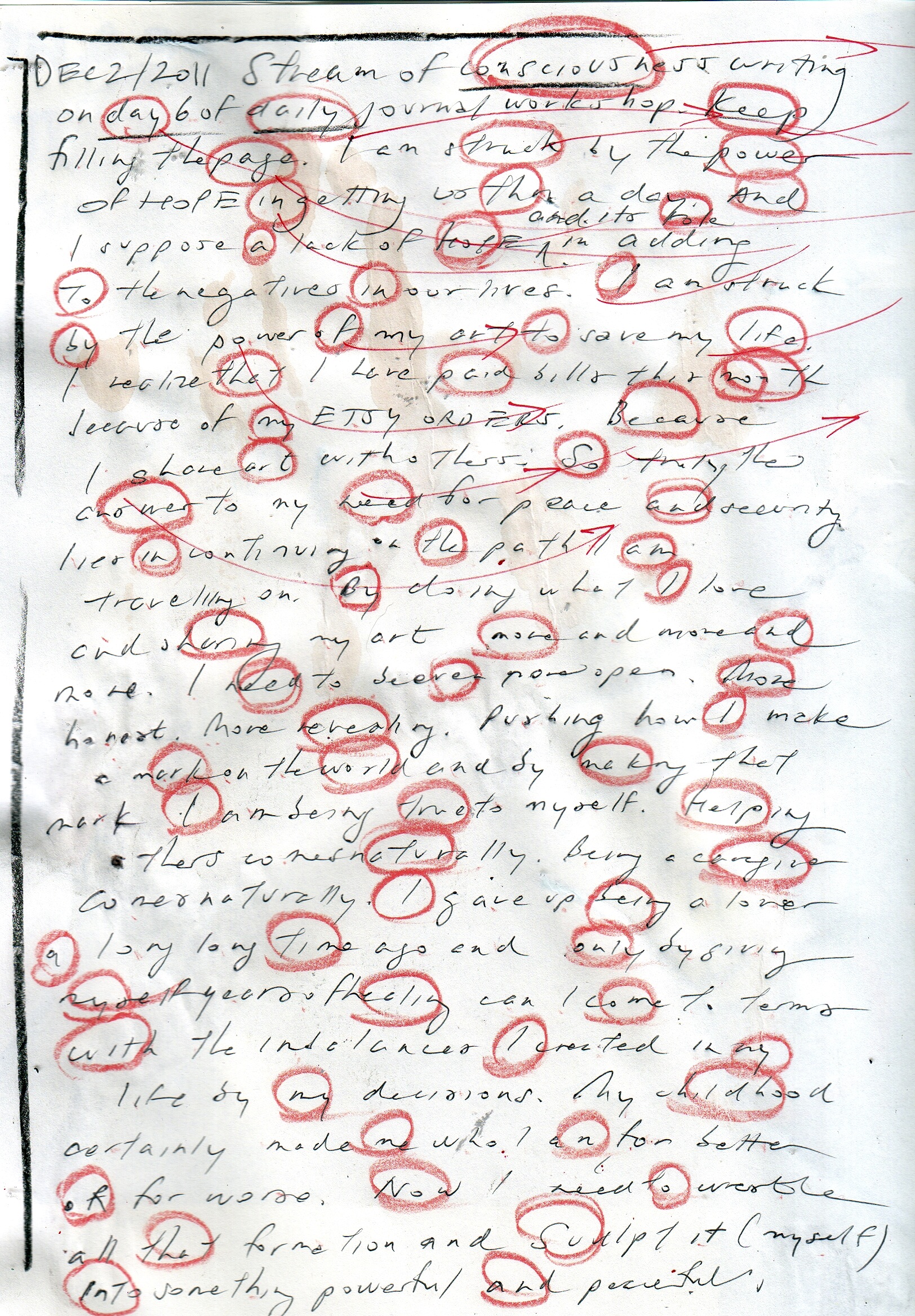 Recall in Part 6, we spent some minutes at the end writing. Stream of consciousness, filling the page.