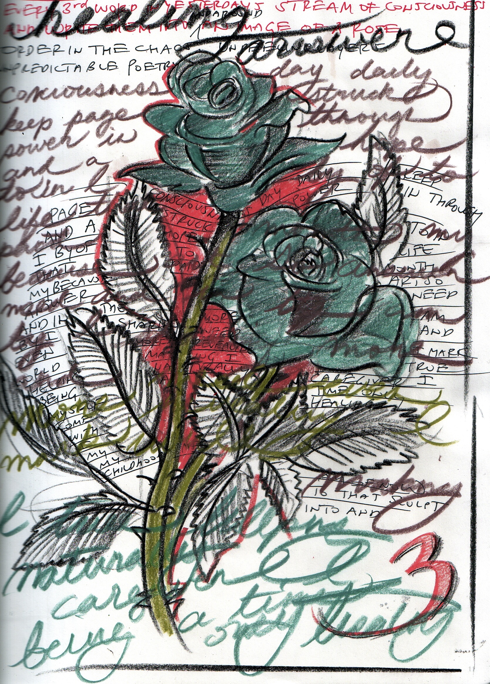 Now sketch an image of a rose and add the words around it, over it, through it. Order in the chaos. Unpredictable poetry. Layers and layers. Such is life.